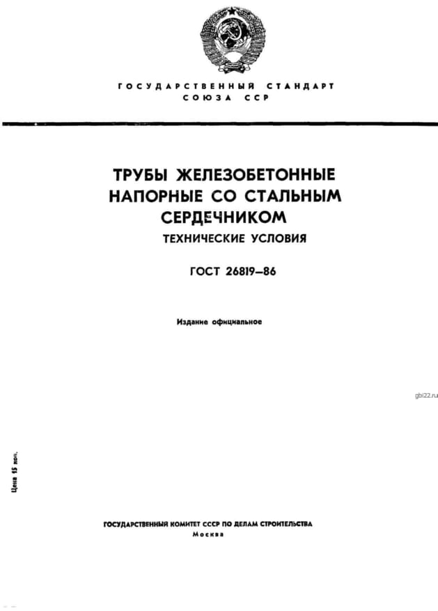| Название стандарта | Трубы железобетонные напорные со стальным сердечником. Технические условия. |