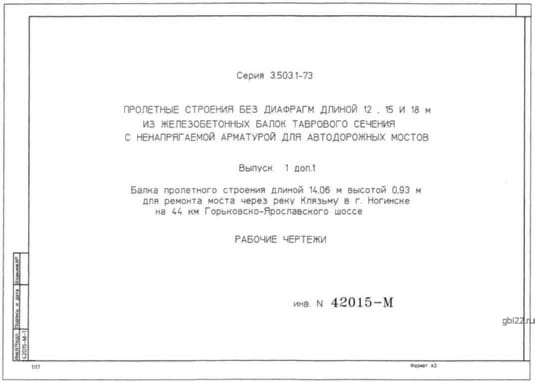 Пролетные строения без диафрагм длиной 12 , 15 и 18 м из железобетонных балок таврового сечения с ненапрягаемой арматурой для автодорожных мостов.