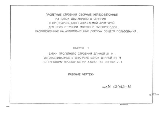 Пролетные строения сборные железобетонные из балок двутаврового сечения с предварительно напрягаемой арматурой для реконструкции мостов и путепроводов. Расположенных на автомобильных дорогах общего пользования.