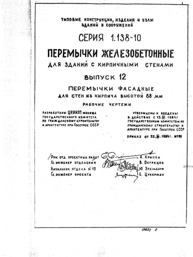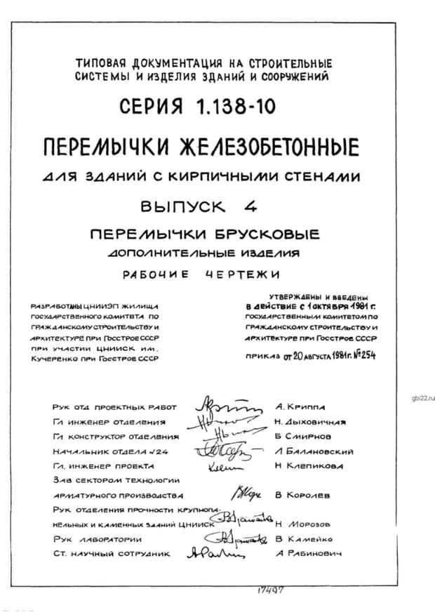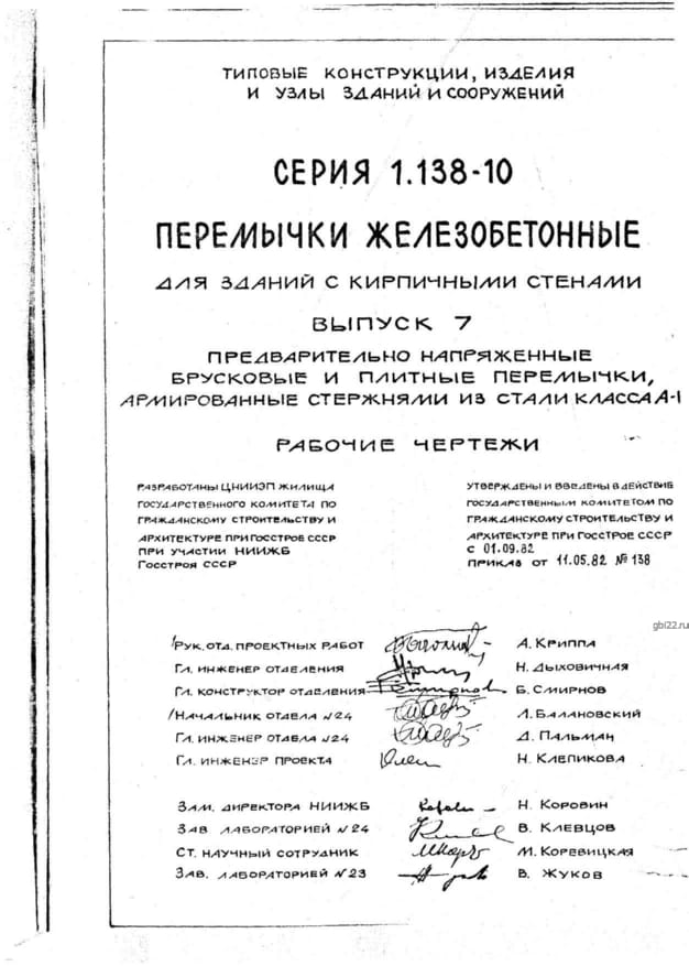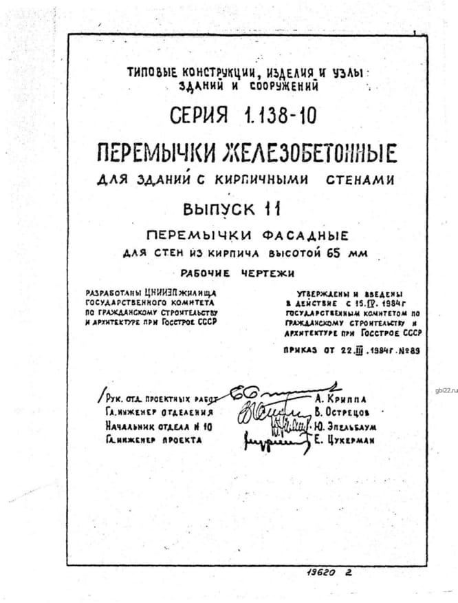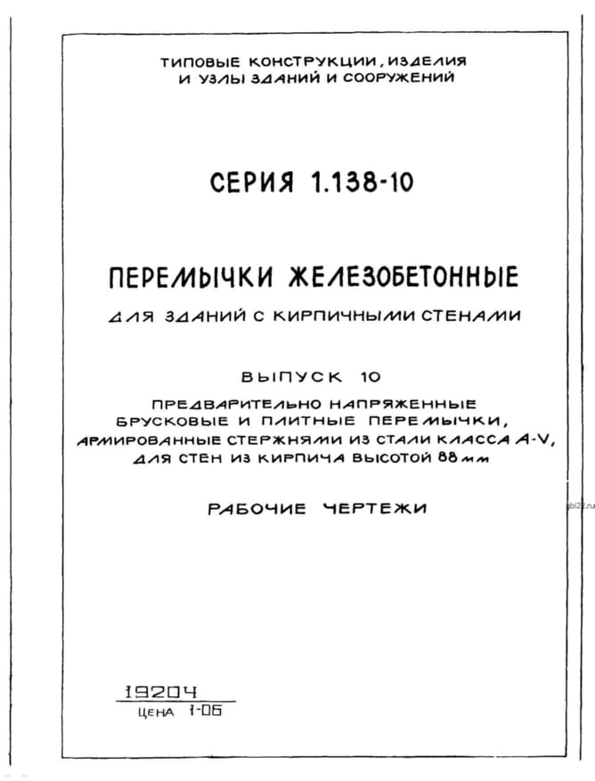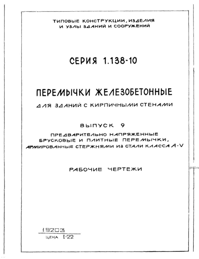 | Название стандарта | Перемычки железобетонные для зданий с кирпичными стенами. |