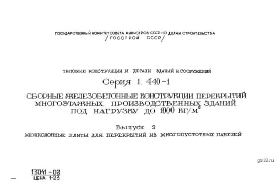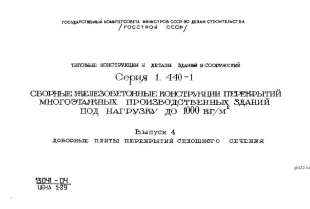 | Название стандарта | Сборные железобетонные конструкции перекрытий многоэтажных производственных зданий под нагрузку до 1000 кг/кв. м. |