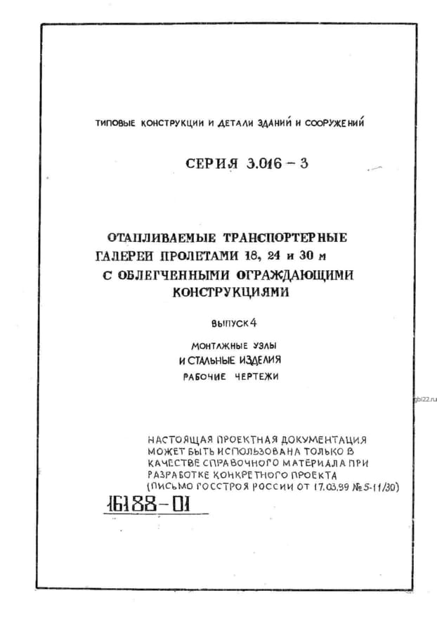 | Название стандарта | Отапливаемые транспортные галереи пролетами 18, 24 и 30 м с облегченными ограждающими конструкциями. |