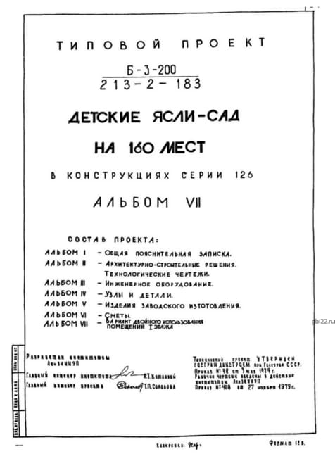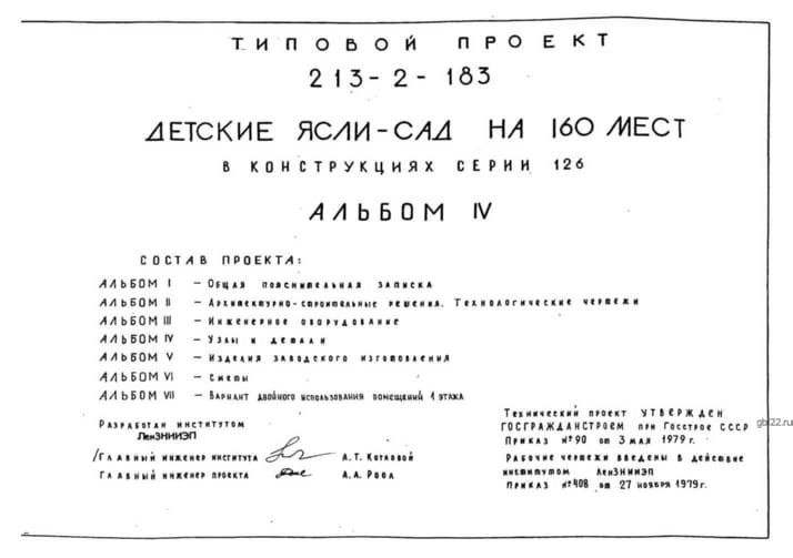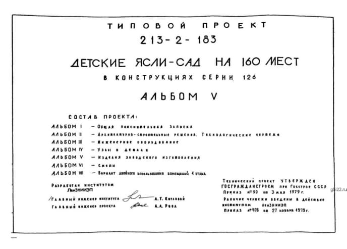 | Название стандарта | Детские ясли-сад на 160 мест в конструкциях серии 126. |