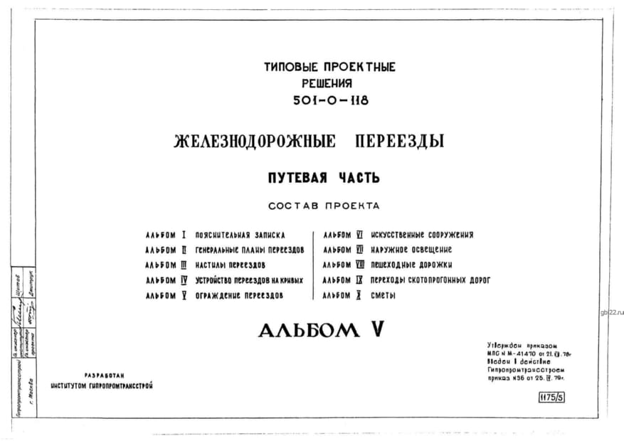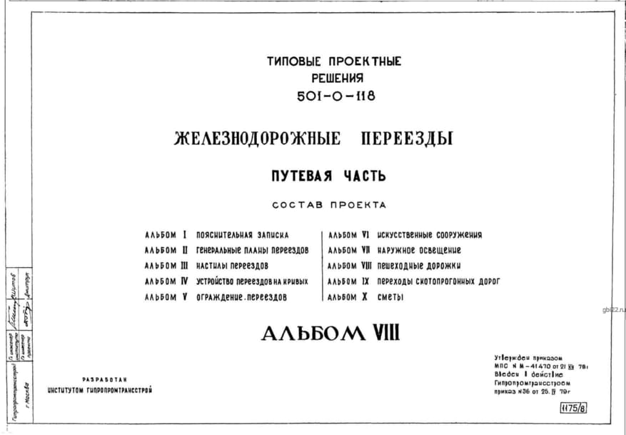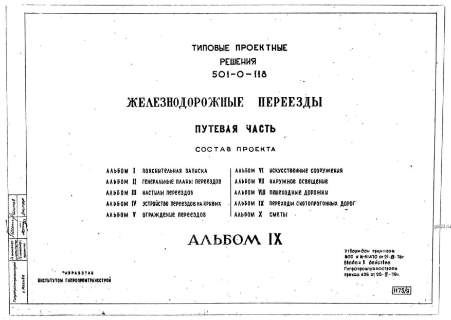 ТПР 501-0-118 регламентирует требования к путевой части железнодорожных переездов, обеспечивая их безопасность и долговечность. Документ включает нормы проектирования, монтажа и эксплуатации рельсовых элементов, настилов и креплений, гарантируя бесперебойное движение транспорта.