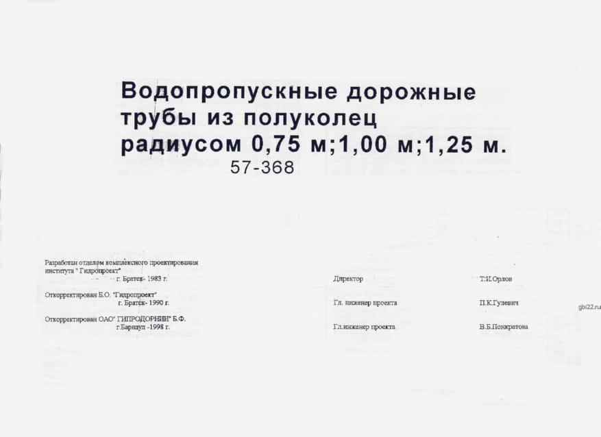 | Название стандарта | Водопропускные дорожные трубы из полуколец радиусом 0,75 м; 1.00 м; 1.25 м. |