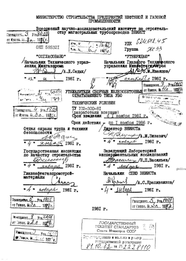 | Название стандарта | Утяжелители сборные железобетонные охватывающего типа УБО. |